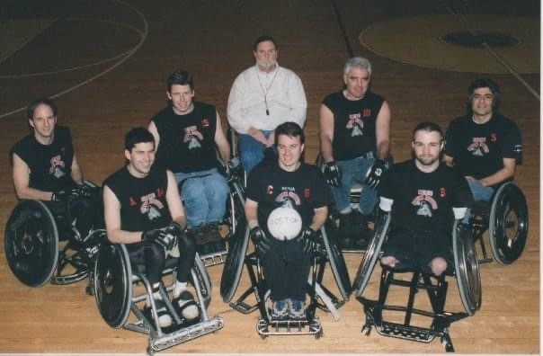 Pictured front row center holding ball, Steve Killilea was a longtime member of the USQRA’s NEPVA (Boston) Pitbulls quad rugby team.