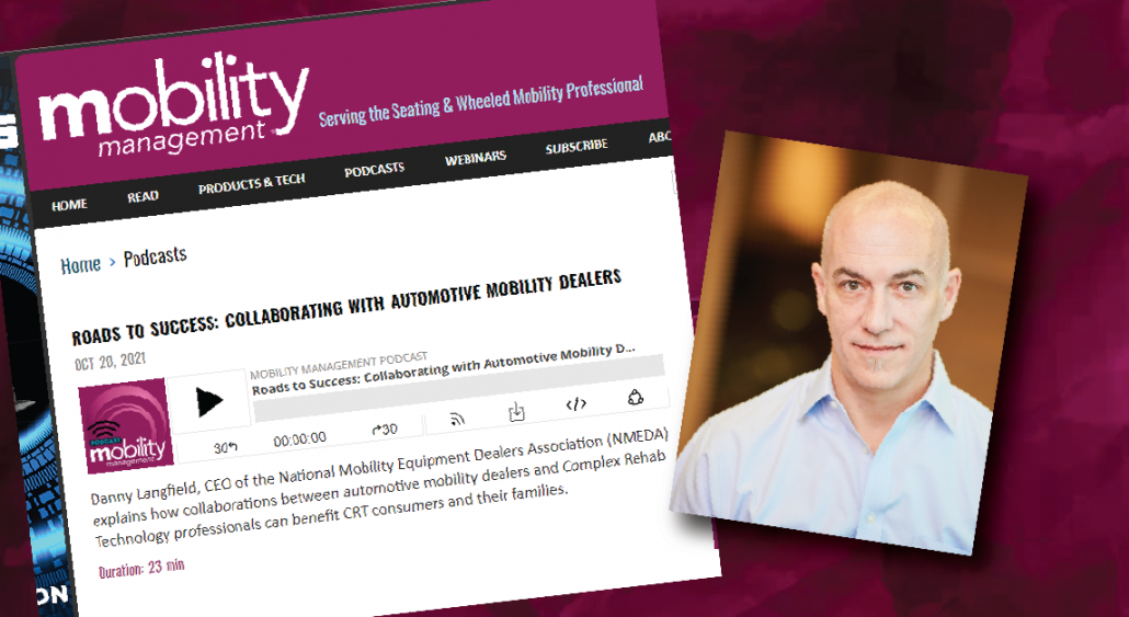 Earlier this year, Danny Langfield, NMEDA CEO, sat down and spoke with Laurie Watanabe of Mobility Management. The recently released podcast, “Roads to Success: Collaborating with Automotive Mobility Dealers,” discusses many resources offered at NMEDA.org and the importance of collaboration with automotive mobility dealerships in the purchasing process.