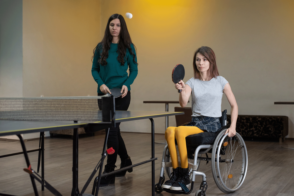 Table tennis allows wheelchair users and able-bodied people to compete head-to-head against each other, making this a truly inclusive sport. Its ability to accommodate multiple levels of players has made table tennis one of the most popular sports for wheelchair users. It is even an integral part of many rehabilitation programs!